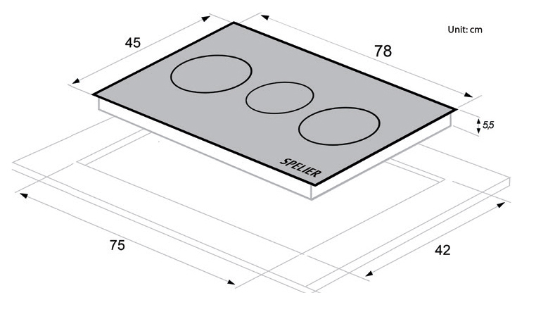 • Kích thước bếp (D x R x C): 78 x 45 x 5,5 cm