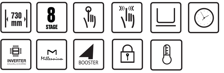 • Hệ thống điều khiển“Slider Control”cảm ứng điện cực, nhanh và chính xác