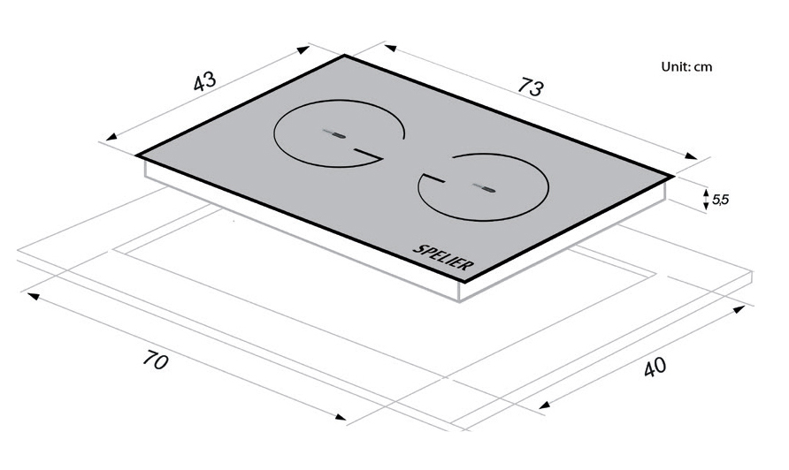 • Kích thước bếp (D x R x C): 73 x 43 x 5,5 cm