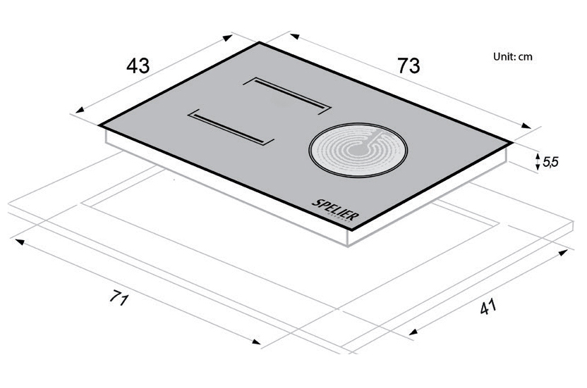 • Kích thước bếp (D x R x C): 73 x 43 x 5,5 cm