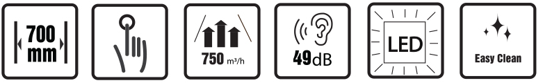 Hút mùi lắp âm tủ ; Hiệu suất hút không khí tối đa: 750m3/h