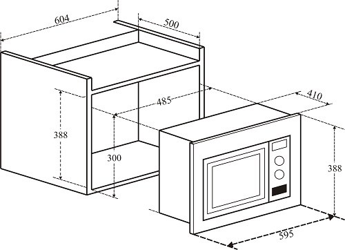 - Kích thước khoét gỗ: 604R x 388C x 400S